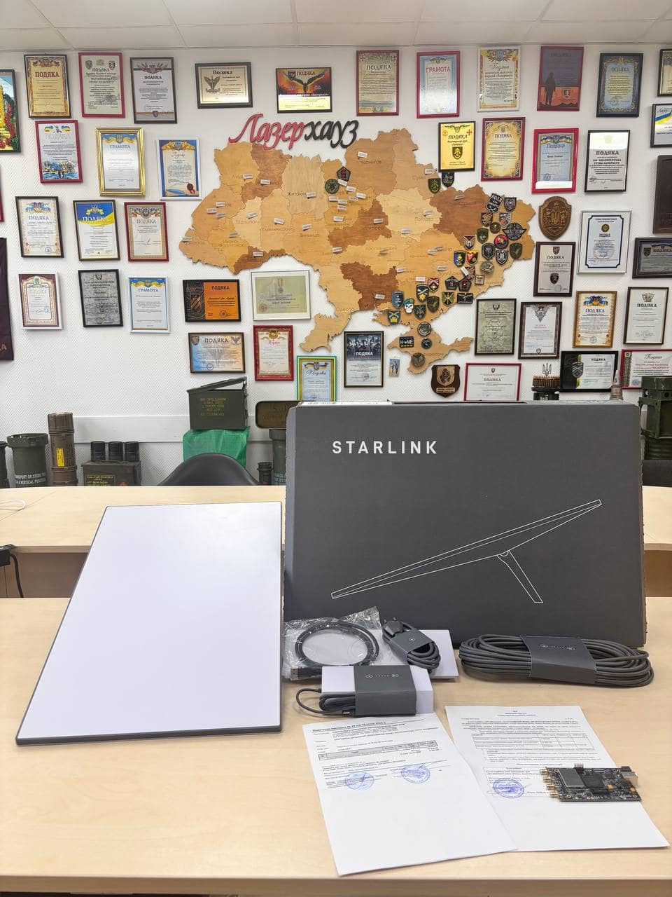 До Волонтерської групи по допомогу для свого чоловіка звернулася спеціалістка мережі центрів «Лазерхауз» з Тернополя, який служить у складі ССО. Для комплектації нового підрозділу радіоелектронної розвідки потрібен був комплект Starlink для надійного зв'язку та спеціальне коштовне радіообладнання, що допоможе якісно виконувати основне призначення підрозділу. Волонтерській групі «Лазерхауз» вдалося знайти та придбати все необхідне обладнання, також додатково забезпечити фінансування послуги інтернету на 6 місяців. Вдячні військові передали подяку як на відео, так і паперову.